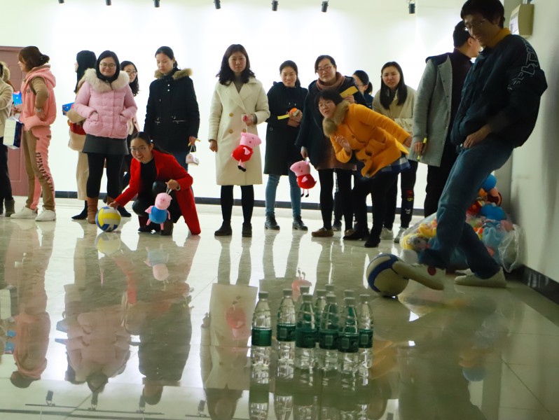 全校各单位女教职工分为12个小组,分属12个生肖,以个人名义参加趣味活动赢取小礼品,以工会小组名义积分争夺前三名。活动包括“魔力套圈”“挑战国王”“夹乒乓球”“脚夹沙包丢远”“趣味保龄球”“投壶”等。大家积极参与,一起享受美好时光。
