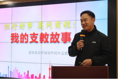 袁辉老师以真挚的语言,向志愿者们讲述了自2012年以来十三年的支教经历,分享了与学生们之间的温馨点滴。他坚持六年为患有“成骨不全症”的学生田艳青送教上门,无论风雨,骑行二手摩托车跋涉三公里山路,甚至在严寒中冒雪前行,最终助力该生以621分的优异成绩考入武汉大学。此外,他还不断创新教学形式,运用诗词、情景剧、左右手镜像字等方式,激发孩子们的学习兴趣,让课堂充满活力。