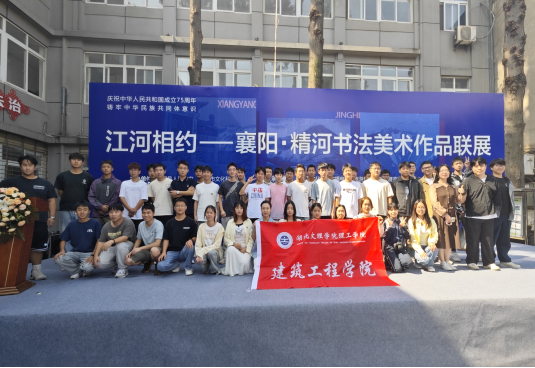 (建工学院 汪纪婷)为庆祝中华人民共和国成立75周年,深入贯彻习近平新时代中国特色社会主义思想,加强学生铸牢中华民族共同体意识,9月26日上午,建筑工程学院40余名师生前往襄阳市美术馆参加“江河相约——襄阳·精河书法美术作品联展”开幕式,并观看襄阳、精河书法美术作品展览。该展览由精河县人民政府、襄阳市文化和旅游局主办,精河县文化体育广播电视和旅游局、襄阳市展览馆、精河县美术馆承办。