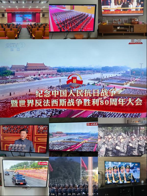 收看过程中,大家全神贯注聆听习近平总书记发表的重要讲话,深刻感悟讲话中对历史的深切回望、对和平的坚定捍卫以及对民族复兴的殷切期许。当受阅部队各兵种以昂扬姿态依次通过天安门广场时,整齐的方阵、铿锵的步伐、嘹亮的口号、猎猎的战旗、精良的兵器、先进的装备、呼啸的“铁鹰”让大家深切感受到祖国的强大实力与人民军队的使命担当,民族自豪感与历史责任感在心中油然而生。