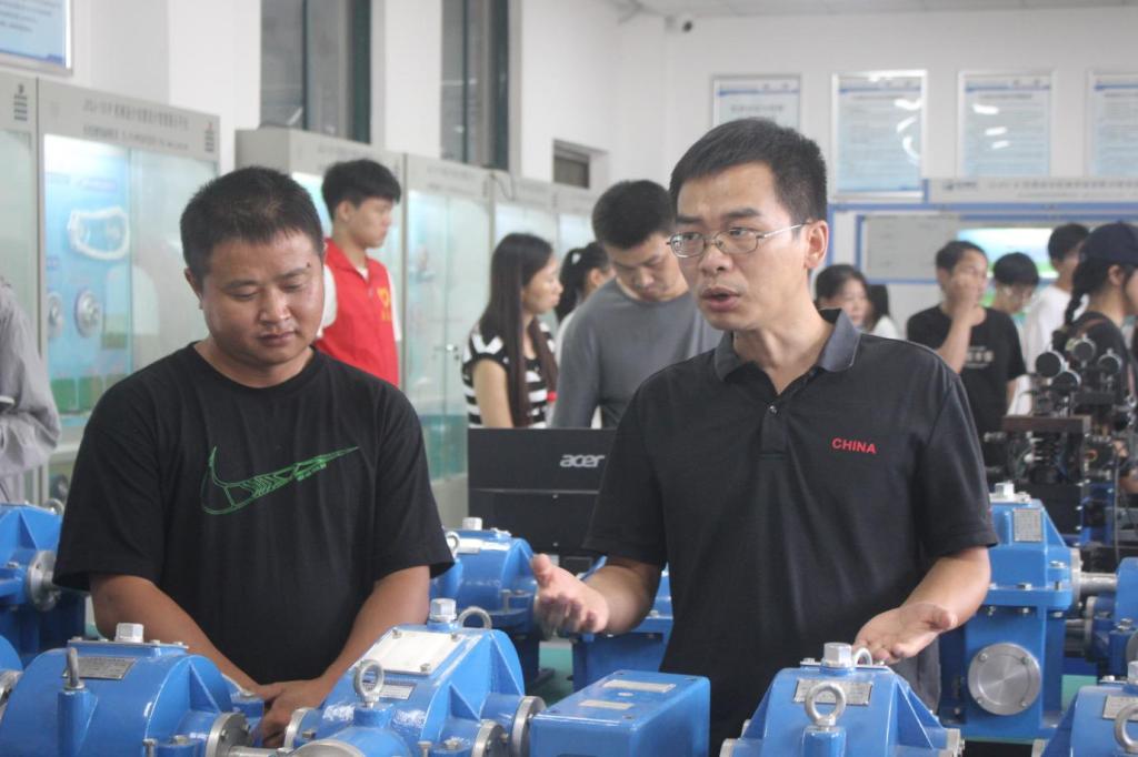活动现场,黄能会带领新生及家长从金工实训室开始参观,在参观过程中详细介绍了金工实训室的功能,以及学生们将在金工实训室完成的实训内容。