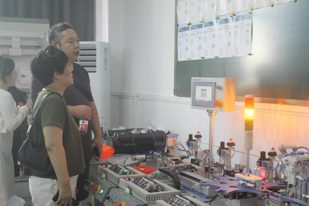 随后,黄能会还带领家长们走进互换性与工程材料实验室、液压实训室、机械原理实训室、PLC实训室、机械设计实训室、电工电子实验室、工业机器人实验室。他结合每间实训室的实际功能、所承担的学科竞赛方向、技能培养类型等详细地进行了讲解,并就各实验实训室的核心器械,进行了现场实操,直观讲解实训教学与技能培养的关联。