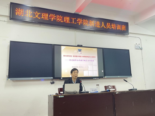随后,湖北文理学院原党委副书记、副校长王为一教授以《弘扬教育家精神加强师德师风建设努力提升教师立德树人的能力和水平》为题,为全体新进教师讲授“开班第一课”。王为一结合自身丰富的教学与管理经验,从师德、教学、科研等多个维度展开讲解,语言生动、案例详实,引发广泛共鸣。