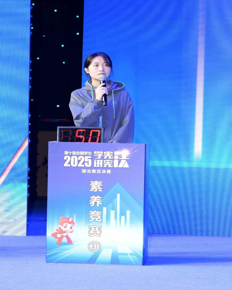 (经管学院 蒋隽雅)近日,由湖北省教育厅主办的第十届全国学生“学宪法 讲宪法”素养竞赛湖北赛区决赛圆满落幕。我校法学学子王萌凭借深厚的宪法素养与出色的临场表现,从全省22所高校的精英选手中脱颖而出,力压华中科技大学、华中师范大学等强劲对手,斩获省赛第一名,并将作为湖北省高校组唯一选手参加全国总决赛。这是我校乃至襄阳市高校在该赛事中取得的历史最佳成绩,实现重大突破。