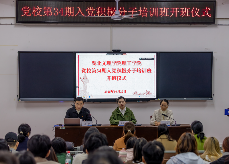 (党群工作部 杨鹏)10月22日晚,学校在1教105报告厅举行党校第34期入党积极分子培训班开班仪式。校长助理朱雪林、党群工作部部长刘晓君、各二级学院党总支书记、各培训班班主任及全体学员参加开班仪式。开班仪式由党群工作部副部长王凯主持。