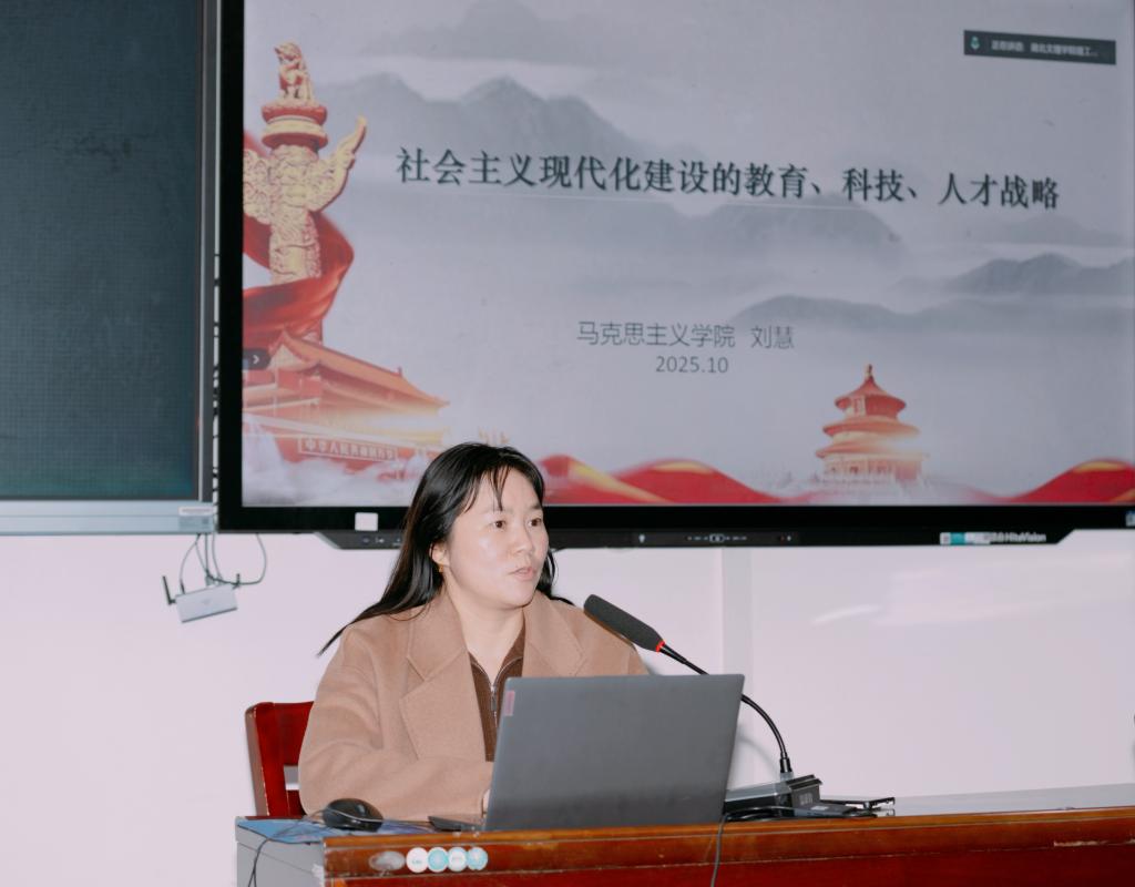 开班仪式结束后,马克思主义学院党总支书记、院长刘慧以《社会主义现代化建设的教育、科技、人才战略》为题讲授首场专题党课。