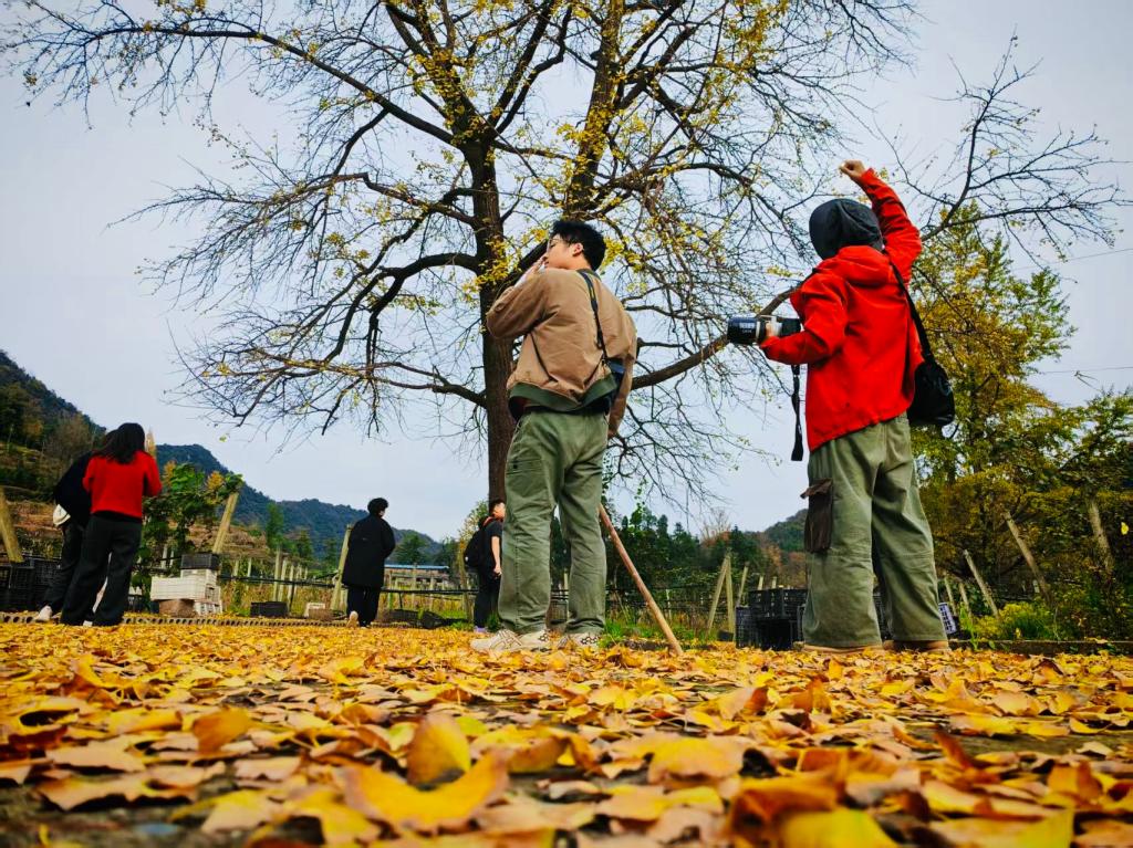 活动期间,学生们背着画板、拿着相机,在村头巷尾、田间地头、古宅老树之下,用手中的画笔捕捉山乡秋色,勾勒古朴建筑,将瞬间的光影与永恒的乡愁凝固于画纸之上。王维诗中的‘银杏叶落,满地黄花’,在镜头中化作金雨纷飞。他们的作品既有对自然景色的细腻描绘,也包含了对乡村空间布局与美学价值的思考。