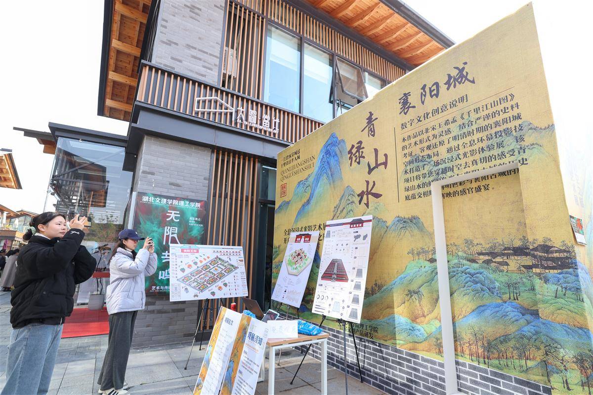 襄水街是襄阳首个滨水生态艺术街区,这也是该校连续第二年在校外举办毕业设计展。襄王府、襄阳城墙、襄阳贡院……走进数字展馆,襄阳古建筑和文化符号以数字技术一一呈现,青绿山水的鲜明色彩与襄阳古城的历史底蕴交相辉映,让游客沉浸式感受历史文化名城的魅力。