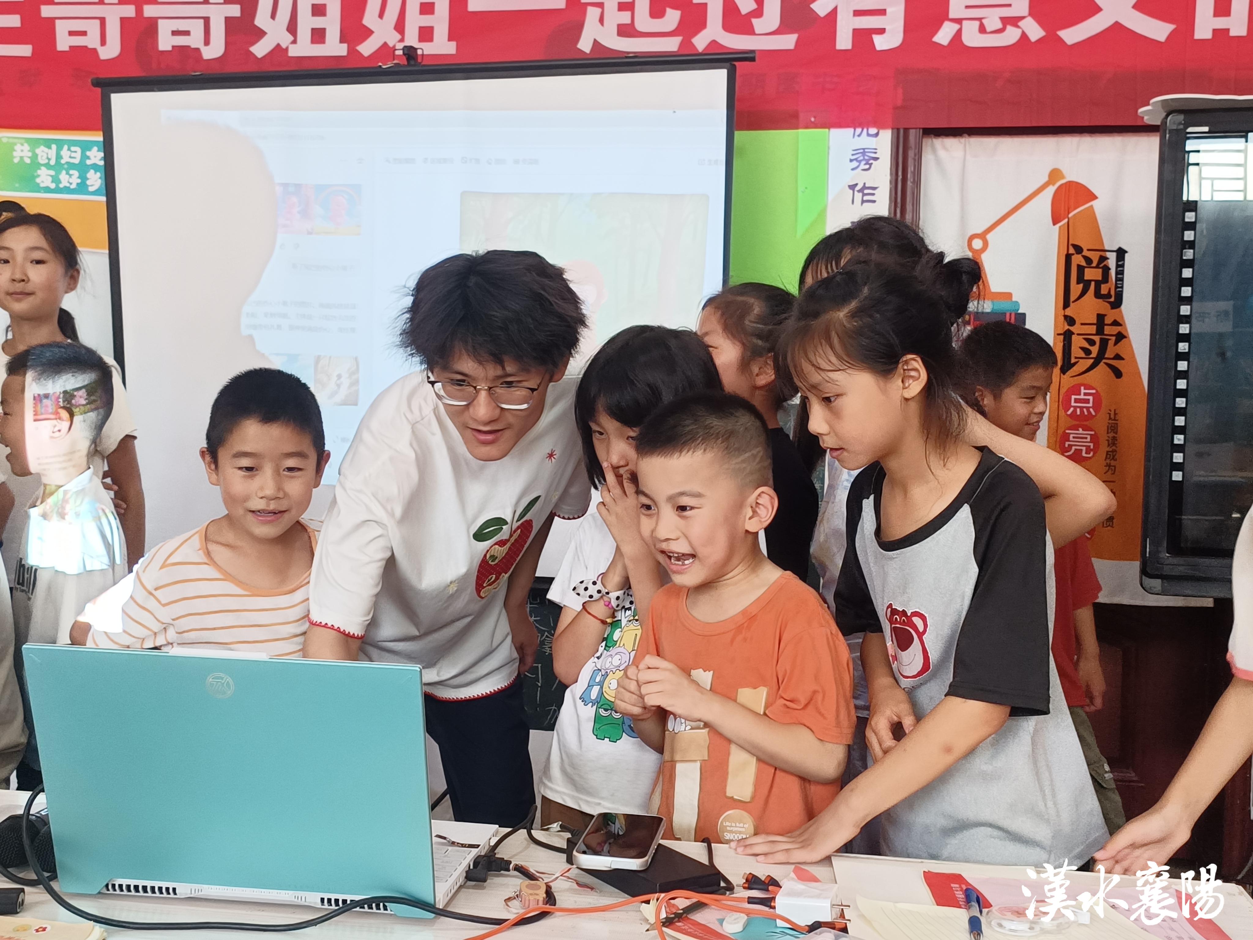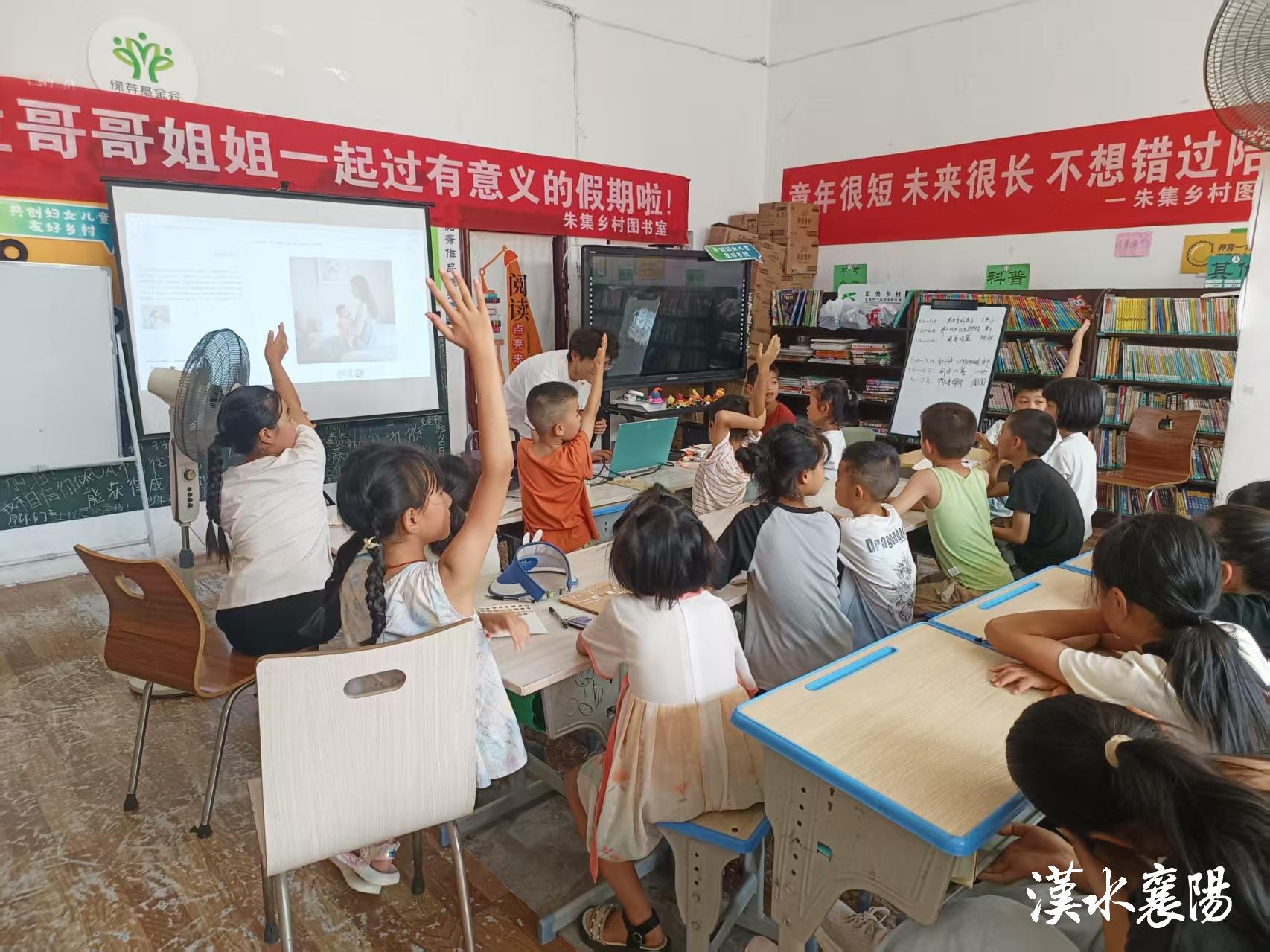 7月7日,朱集乡村图书室变身科技乐园,完美网页版筑梦朱集服务队志愿者为孩子们带来一场趣味十足的人工智能科普活动。