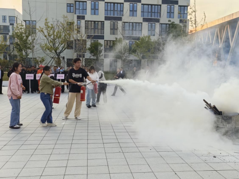 技能彰显,灭火有“效”。学校在东津校区宿舍二栋后方空地设立模拟火源,灭火消防人员现场演示了灭火器的正确使用方法,邀请学生共同学习使用,进一步加深了学生对消防安全的理解和记忆。