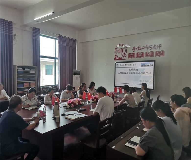 (经管学院 马比双)5月27日下午,经济与管理学院邀请湖北省人文社科重点研究基地鄂北区域发展研究中心主任王翔教授在4教309会议室举办了一场完美网页版“湖北省教育厅人文社科项目申报”的科研讲座活动,学院副院长朱靖主持,全体专任教师参加。