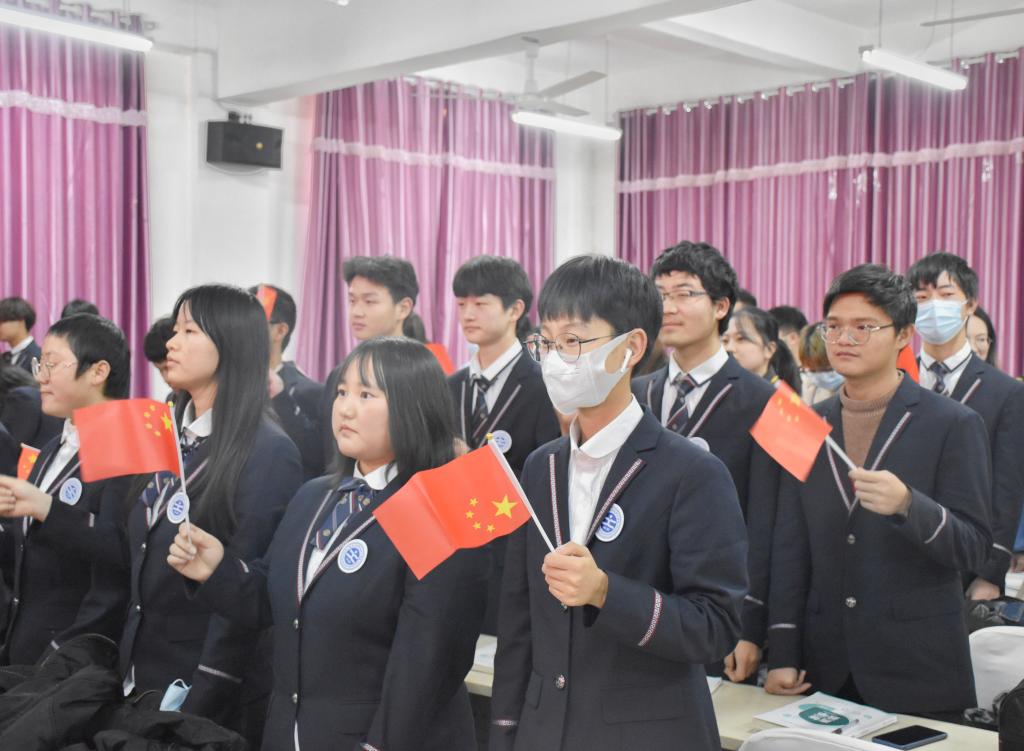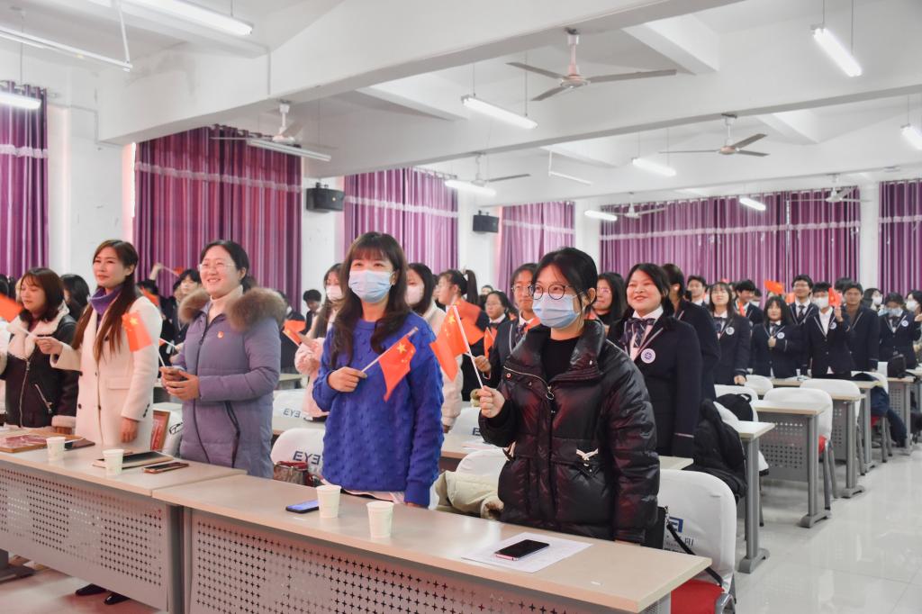活动最后,全体起立,合唱《我和我的祖国》,悠扬的歌声响起,手中挥舞着国旗,师生领导们用各自不同的嗓音,唱出了相同的爱国之情。