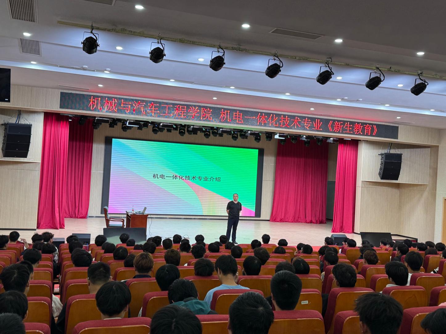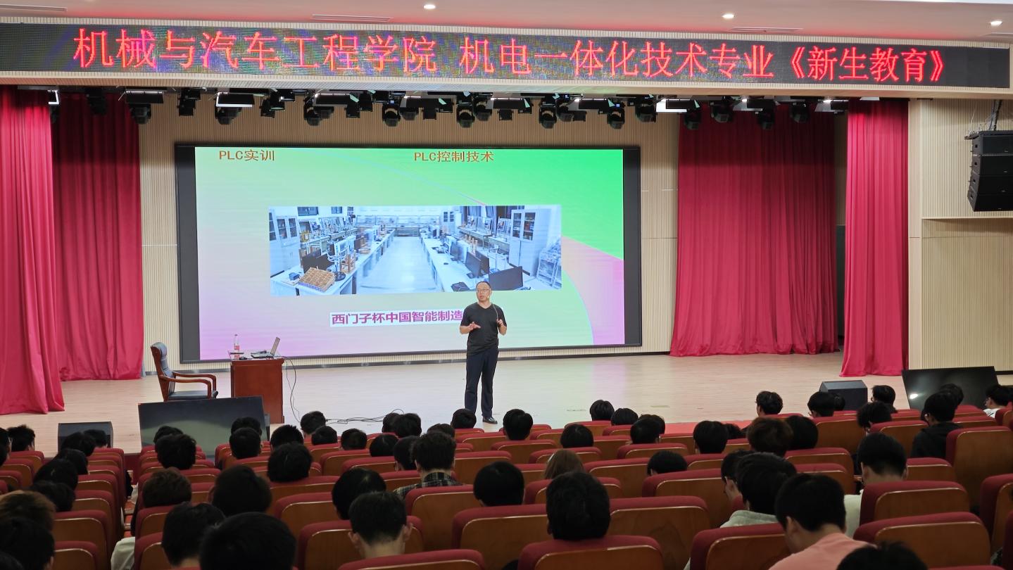 (通讯员 余汪洋)9月17日晚上,机械与汽车工程学院在大学生活动中心三楼报告厅面向25级机电一体化技术专业新生开展了新生教育。新学期开始,很多学生有点迷茫,为了让学生更快的适应大学生活、对即将展开的大学生涯有更加清晰的认识和规划,专业负责人赵小英老师开展了此次讲座。以介绍大学专业、学习、生活为主,引导学生立志报国、一心向学,倡导打造宿舍、教室良好的学习氛围。同时对学生玩手机的现象进行了理性分析,以扭转学生的不良习惯,端正学生的学习态度。希望同学们充分利用大学提供的资源和平台,不断提升自己的综合素质和竞争力,为将来成为社会的栋梁之才打下坚实的基础。