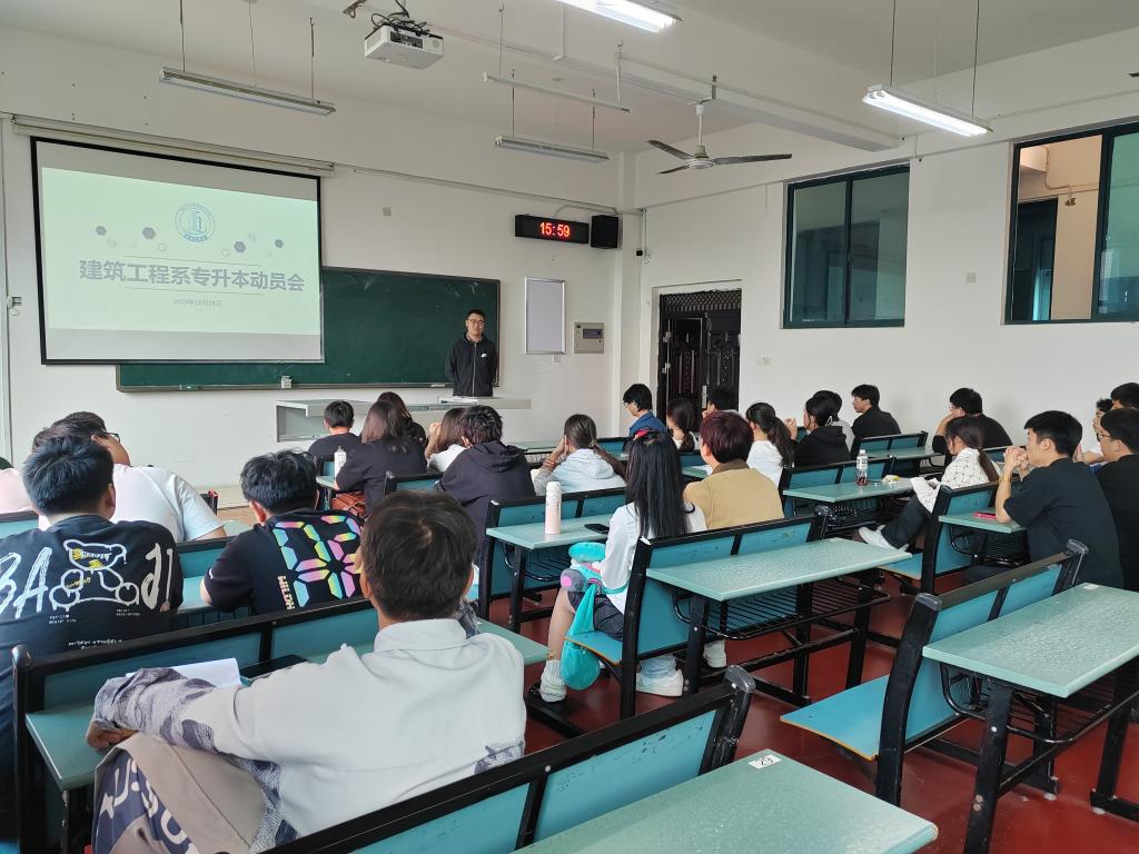 2023年10月24日下午,建筑工程系在4教203教室举行专升本动员会,本次动员会由辅导员覃璇主持,专业课老师雷浩主讲,参与者为2024届建筑工程技术专业毕业生。