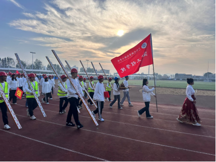 伴随着振奋人心的音乐节奏,建筑工程学院学生方阵亮相,他们步伐坚定,身着彰显学院特色的统一服装,动作整齐划一,犹如精密编排的程序般精准无误,为这场运动会拉开了一个璀璨夺目的序幕,预示着接下来的赛事将充满精彩与激情。
