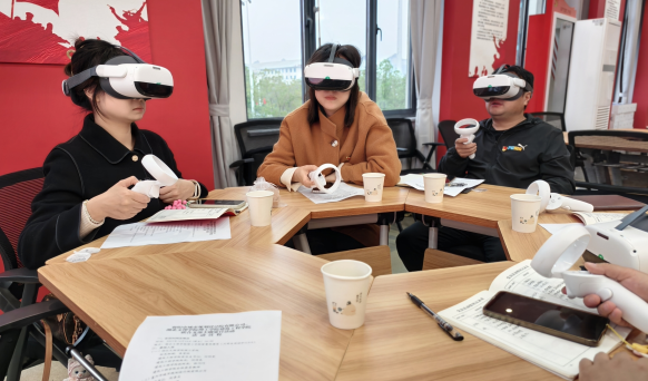 随后开展的VR沉浸式党史学习,成为本次活动的一大创新亮点。党员同志们佩戴VR设备,仿佛亲身“走进”革命圣地与历史展馆,从嘉兴南湖的红船旁感受初心启航,到延安窑洞前体悟艰苦奋斗精神。虚拟现实技术打破时空限制,让党史学习从“被动听”变为“主动体验”,既增强了党史学习的吸引力与感染力,也让红色基因在沉浸式体验中深植人心,切实提升了学习实效。