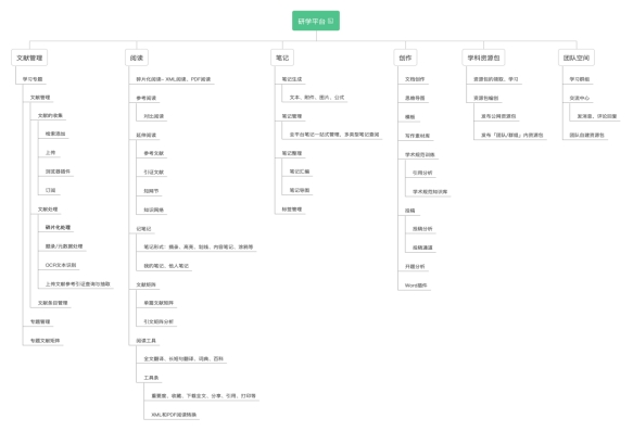 写,支持文本/图片等多形式笔记,实现一键式摘录;笔记导图构建结构化笔记,一键汇编,实现笔记动态管理。