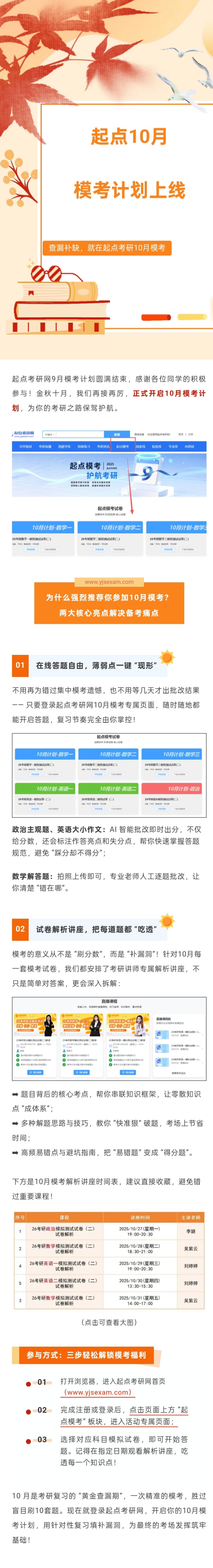 考研人注意!起点10月模考计划上线