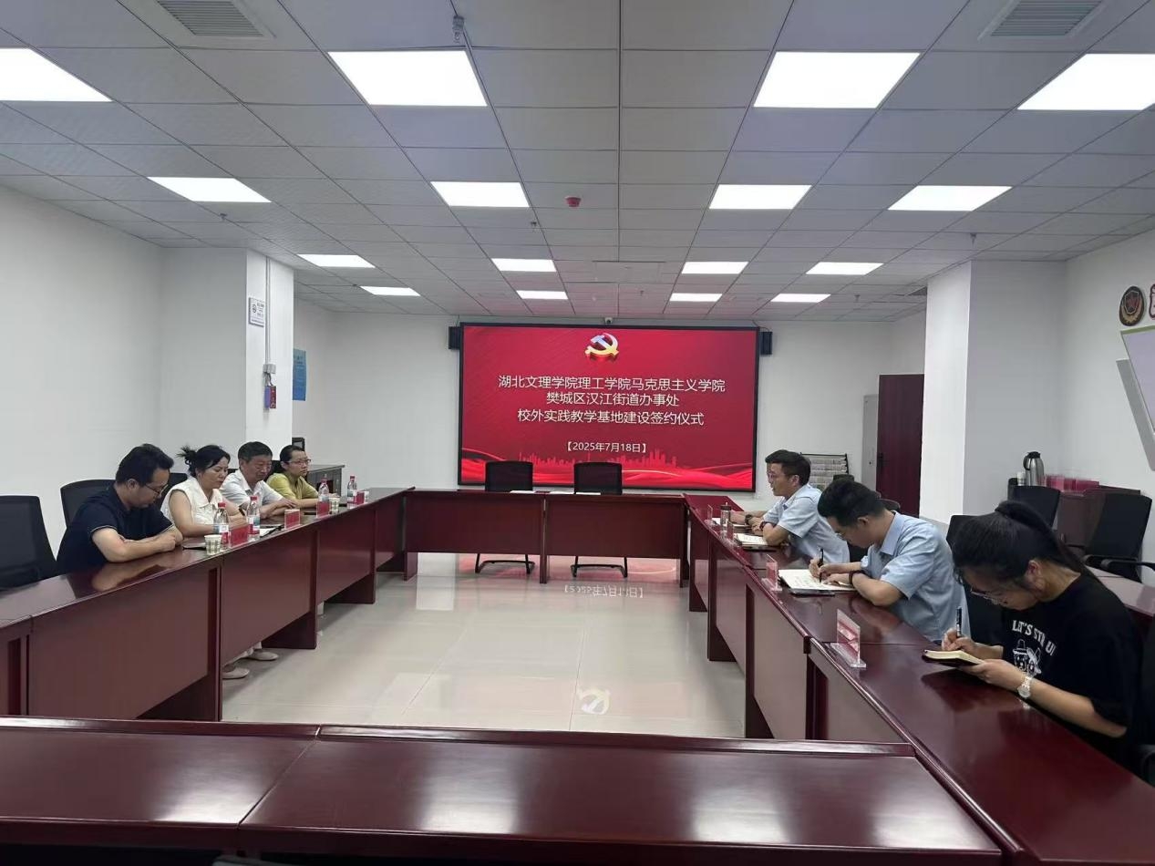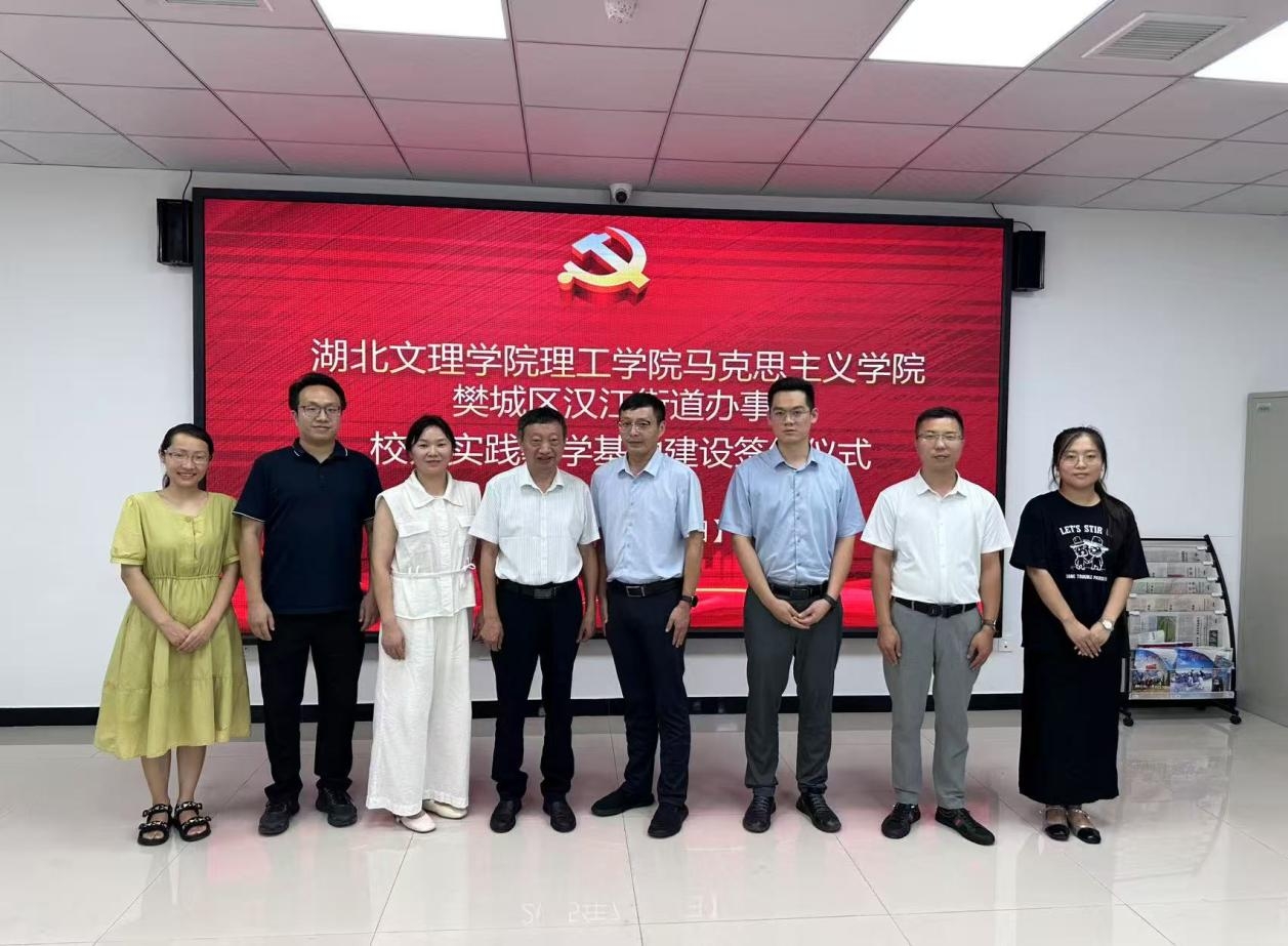 (马克思主义学院 倪鑫杰)7月18日上午,我校马克思主义学院与樊城区汉江街道办事处校外实践教学基地建设签约仪式在汉江街道办事处会议室隆重举行。汉江街道党工委书记万银峰,汉江街道党工委副书记、办事处主任郭旺,汉江街道党工委委员、组织委员、办事处副主任郭文华,汉江街道党建工作办公室主任邓新月,马克思主义学院院长刘慧,教学副院长李明翔,沈年耀教授,教研室主任倪鑫杰出席仪式。