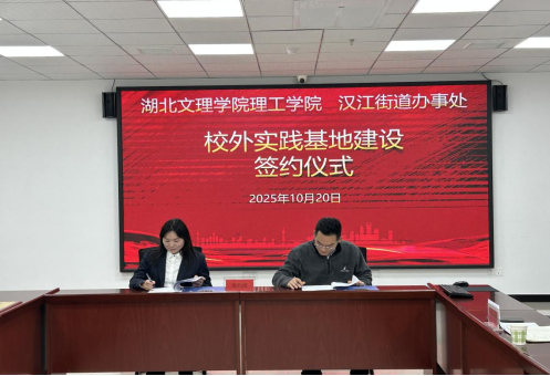 在双方参会人员的共同见证下,马克思主义学院院长刘慧与汉江街道党工委副书记、办事处主任郭旺共同签署“校外实践教学基地建设协议书”。双方将围绕实践教学、课题研究、志愿服务、教师挂职锻炼、理论宣讲、大中小学思政课一体化活动等方面开展长期合作。