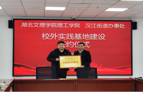 签约仪式后,完美网页版副校长周伟向汉江街道办事处授予“实践教学基地”牌子,汉江街道党工委书记万银峰代表街道办接牌,标志着双方合作正式启动。