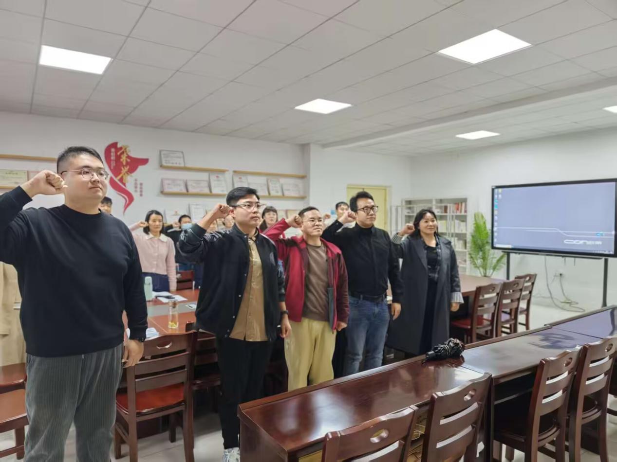 在“回顾初心”环节中,全体与会党员齐声高唱中华人民共和国国歌,用激昂的歌声表达对祖国的崇高敬意。随后,在关志界同志的领誓下,全体党员面向党旗,庄严举起右拳,重温入党誓词,铿锵有力的誓言回荡在会场,彰显了全体党员为党的事业奋斗终身的坚定决心。最后,党员们有序交纳了十月份党费,履行了党员的基本义务。