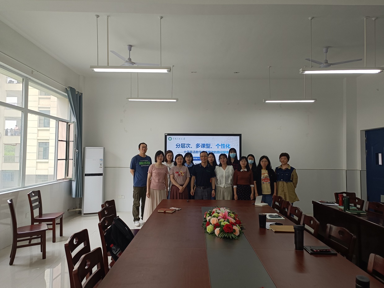 4月18日上午,皋峰教授在8教218教室举办了主题为“分层次、多课型、个性化--大学英语教学提质增效的路径探索”专题讲座,外语系副主任王娟主持,外语系全体教师参加了讲座。