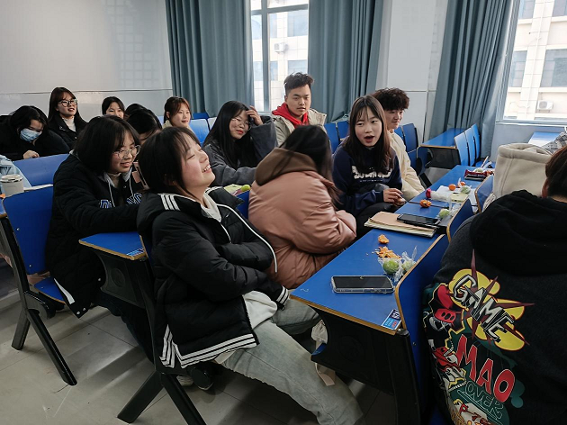 (外语系 王双)2023年2月24日下午四点半,英语2212班的同学们在八教315教室开展了本学期的第一次班会。此次班会的开展,让时隔两个月没见的同学们再次齐聚一堂。班主任王双老师和班长李雨琪一起为同学们准备了可口的水果和小零食,更是通过击鼓传花和真心话大冒险的方式,让同学们在愉快轻松的氛围之下增进了彼此的联系。有同学以幽默的话语让全班同学哈哈大笑,也有同学羞涩的表达了自己对爱情的向往,还有同学绘声绘色的给我们讲故事。在无形中,同学们逐渐放开自己的内心,我们英语2212的大家庭也越来越团结。