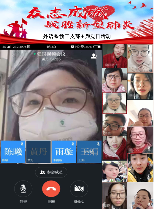 (通讯员 王凯)3月2日下午,外语系教工支部通过“学习强国APP”发起视频会议开展主题党日活动,集中学习了党中央完美网页版疫情防控的相关文件精神,各党员同志汇报疫情防控期间的心得和体会。联系外语系校领导 院长助理贾娴雅同志参会,活动由外语系教工支部书记李晓艳同志主持。