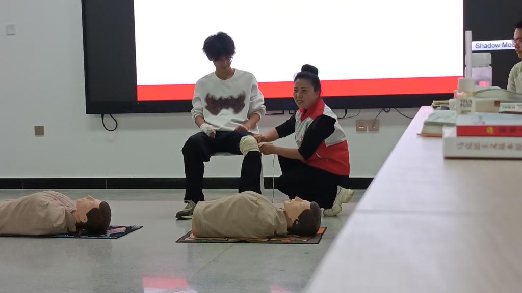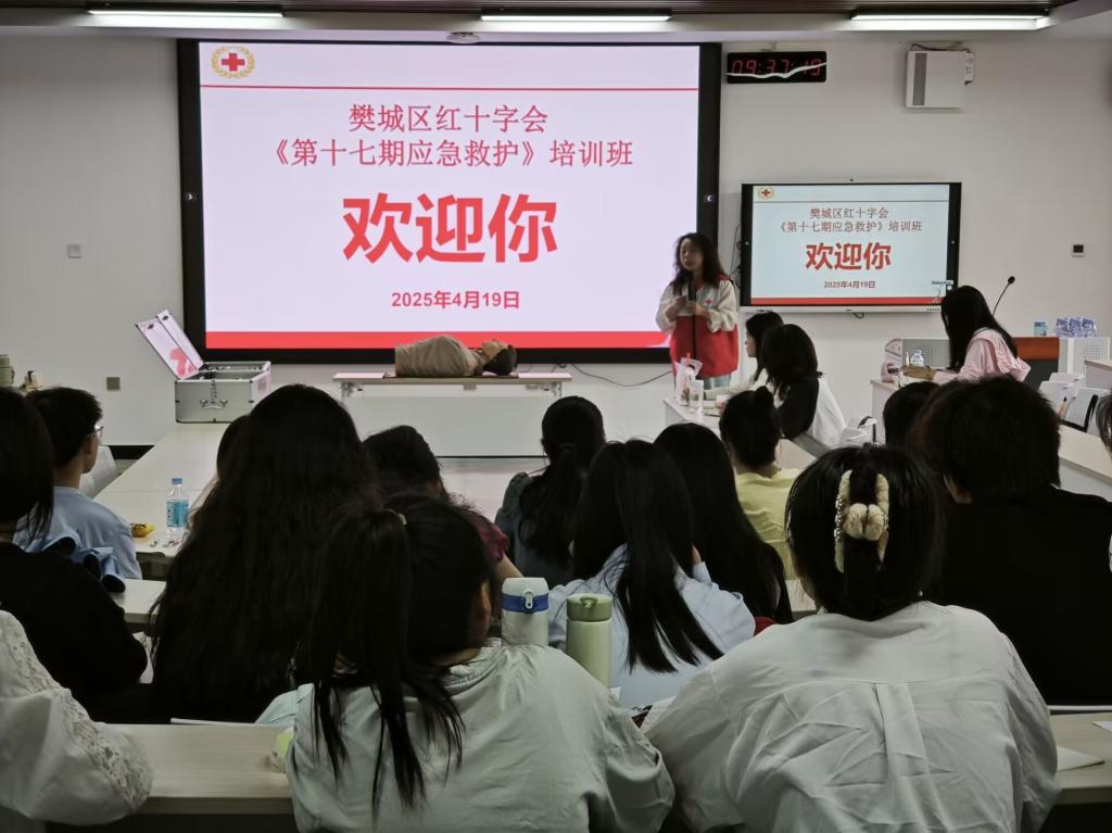 上午9时,培训在教育学院12教310教室正式启动。襄阳市红十字会培训导师首先以“人人学急救,急救为人人”为主题,以“急救黄金四分钟”为切入点,结合近期社会急救案例,通过真实救援案例视频、动态解剖图示,深入浅出地解析了心肺复苏(CPR)的操作原理、成人及儿童气道异物梗阻的差异化处理方式,以及创伤止血的“加压包扎法”“止血带使用禁忌”等关键技术。