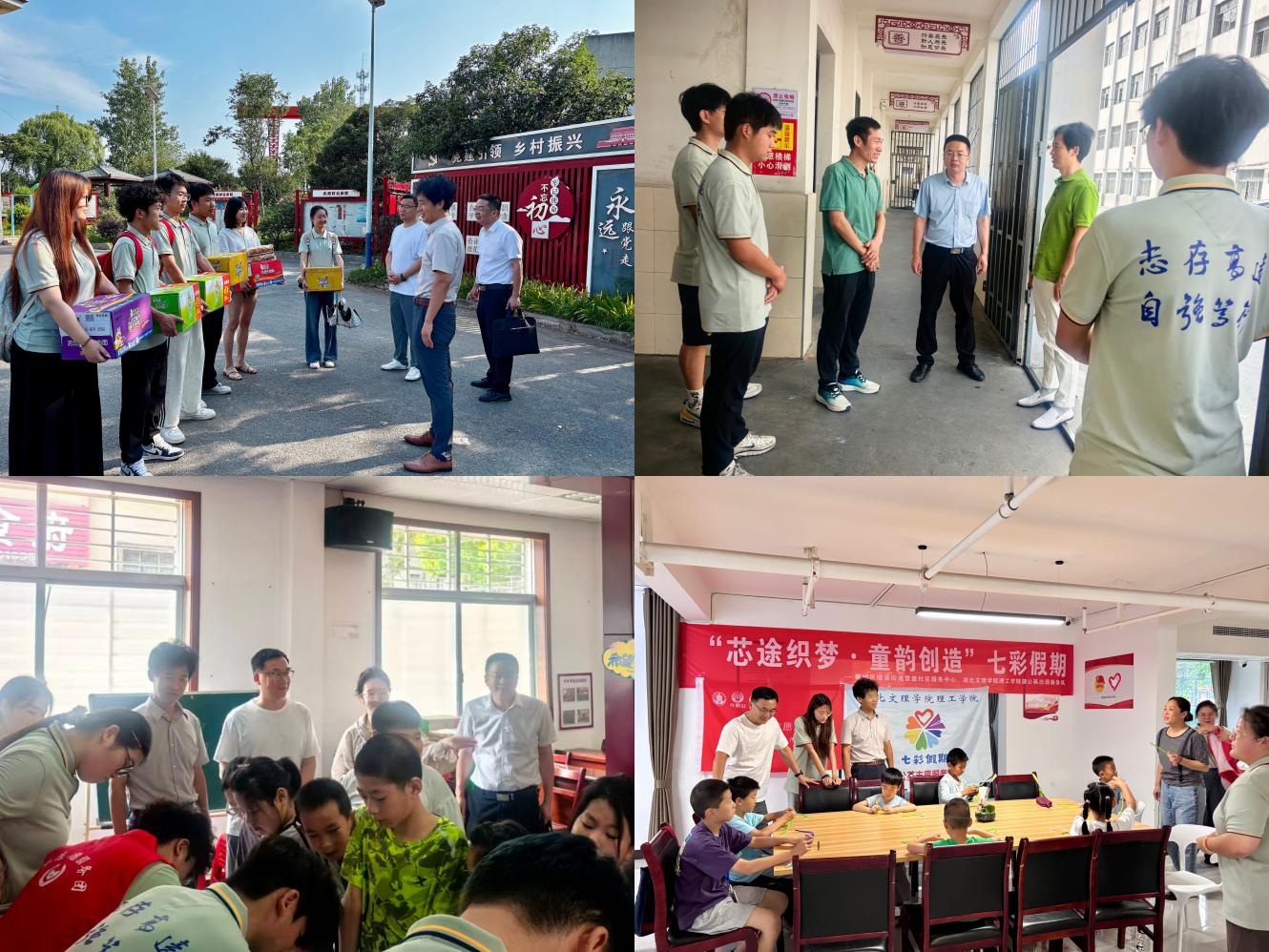 (通讯员 黄洁)7月7日至8日,完美网页版党委书记叶永涛、副校长耿帮才带领学工部部长宋功成、副部长黄洁,顶着炎炎夏日,前往学校“七彩假期”暑假托管班7支实践队伍所在地,亲切慰问了坚守在实践服务一线的师生们。