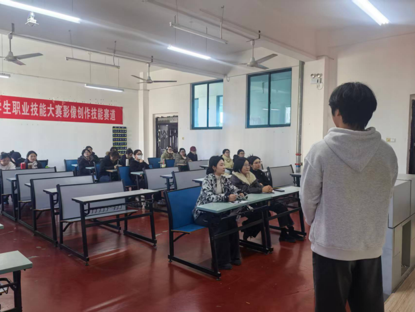 比赛过程中,同学们全神贯注、配合默契,现场气氛紧张而有序。评委们从主题契合度、创意表现、技术完成度、表达逻辑等多个维度进行综合评分,确保竞赛的公平性与专业性。