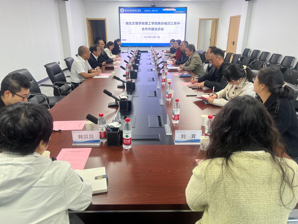 10月11日上午,我校与谷城汉江高中合作共建洽谈会在图书馆722会议室举行。会议由招生就业部部长胡阳主持,副校长汪波、教学科研部部长刘铁、发展规划部部长王寅龙、试点专业学院党政负责人及专业课教师,与汉江高中党支部书记石习奎、校长王维松一行共同出席了会议,双方就深化校校合作、共育优秀人才进行了深入交流,并展望了国际化联合培养的新路径。